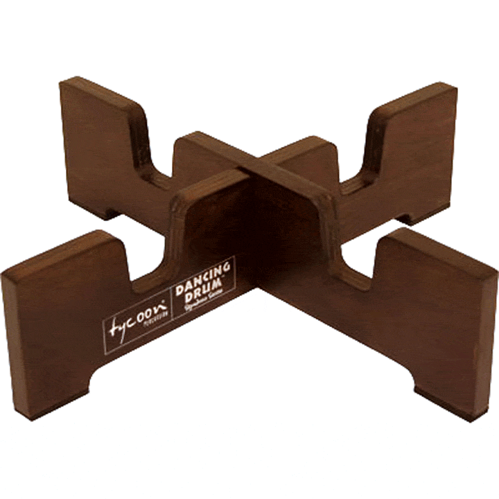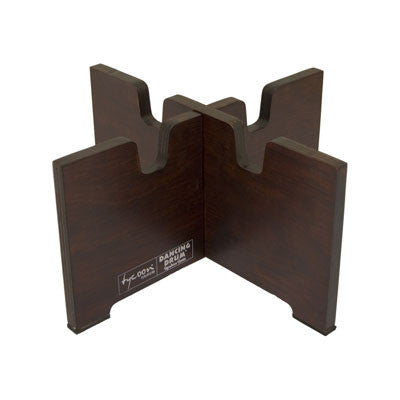 Dancing Drum's Djembe Stands are original, custom designs. Made of 2 interlocking pieces of plywood which come apart easily and stack flat for storage, the stand raises your djembe a couple of inches off the floor for ease of playing. You can tilt the drum in the stand or simply play the drum as it sits upright in the stand.